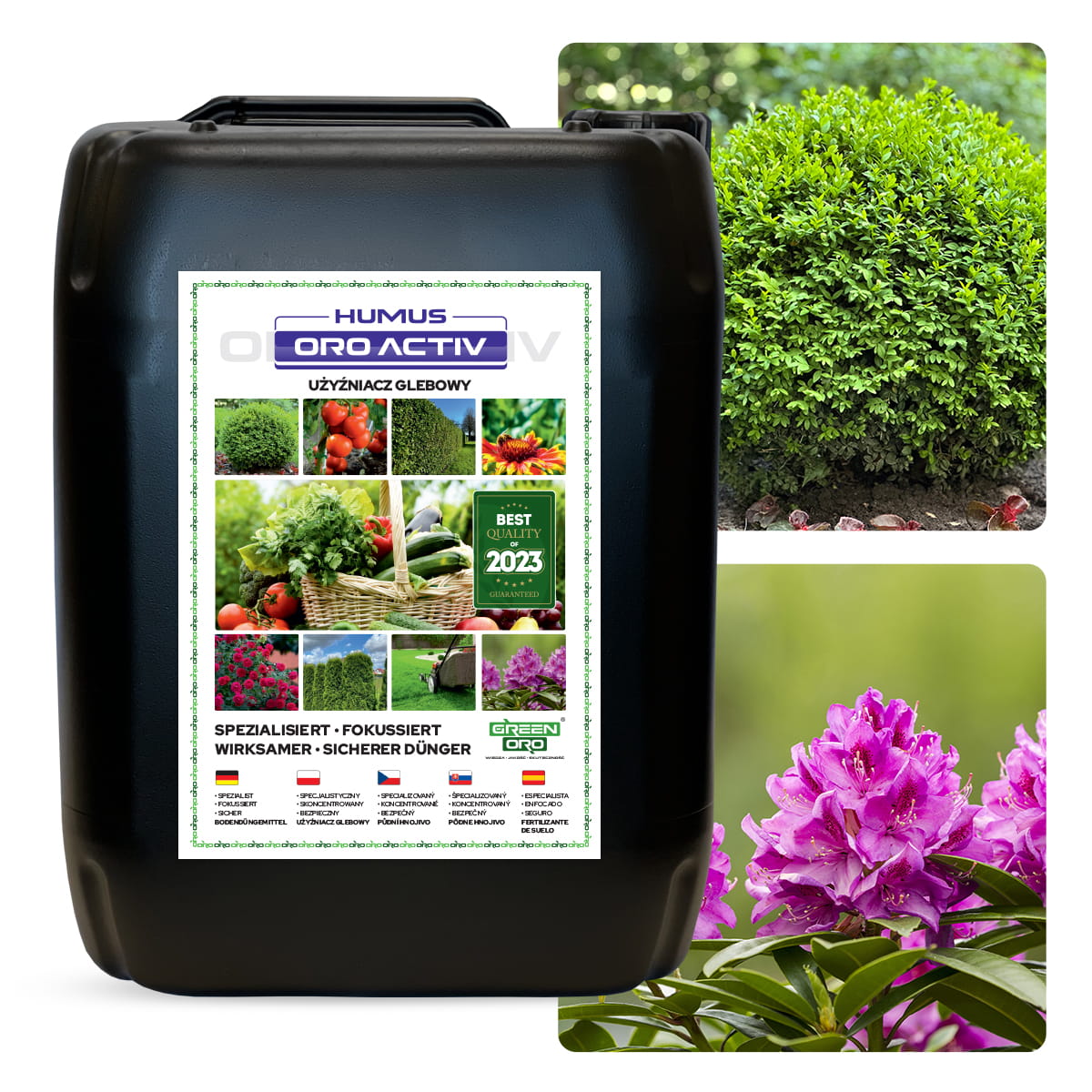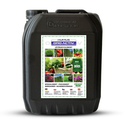 HUMUS ORO ACTIV to skoncentrowany użyźniacz glebowy z kwasów humusowych i fulwowych pochodzenia roślinnego, skuteczny od marca do października dla całego ogrodu: warzyw, owoców, trawnika, róż, tui, iglaków. Gleba wyjałowiona lub o słabej strukturze nie odda roślinom tego, co im dajesz nawozem mineralnym. Nasz nawóz poprawia strukturę gleby, wspomaga mikoryzy i system korzeniowy, chroni przed suszą oraz zwiększa dostępność składników mineralnych. Dawkowanie proste: odmierzasz ml/m², rozcieńczasz i podlewasz. Bezpieczny dla ludzi i zwierząt. To specjalistyczny nawóz, po który chętnie sięgają ogrodnicy i firmy zajmujące się profesjonalną uprawą oraz utrzymaniem zieleni.