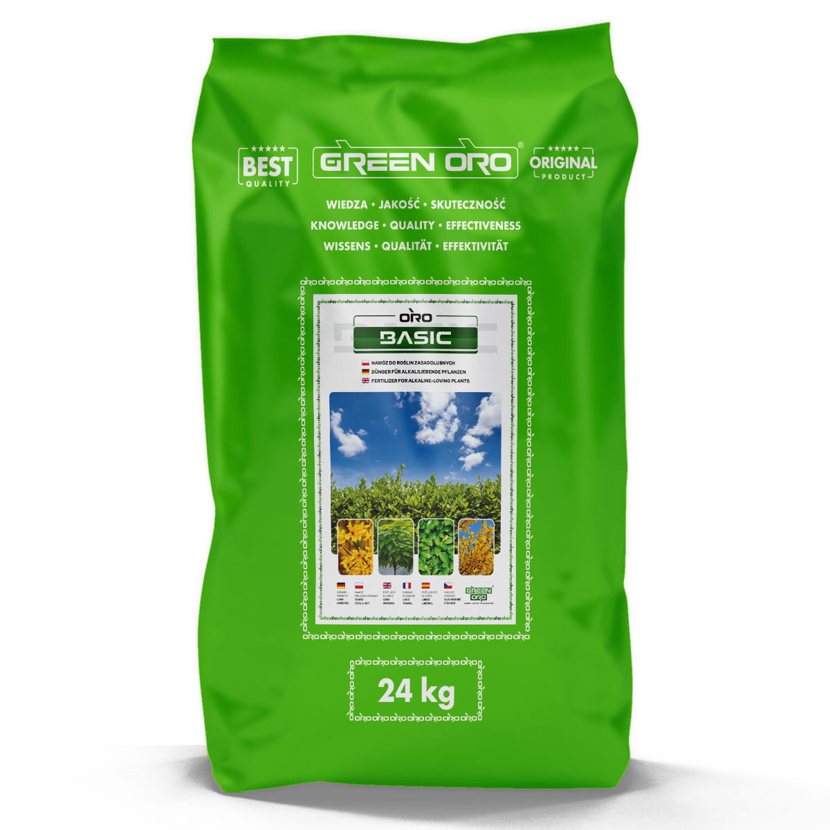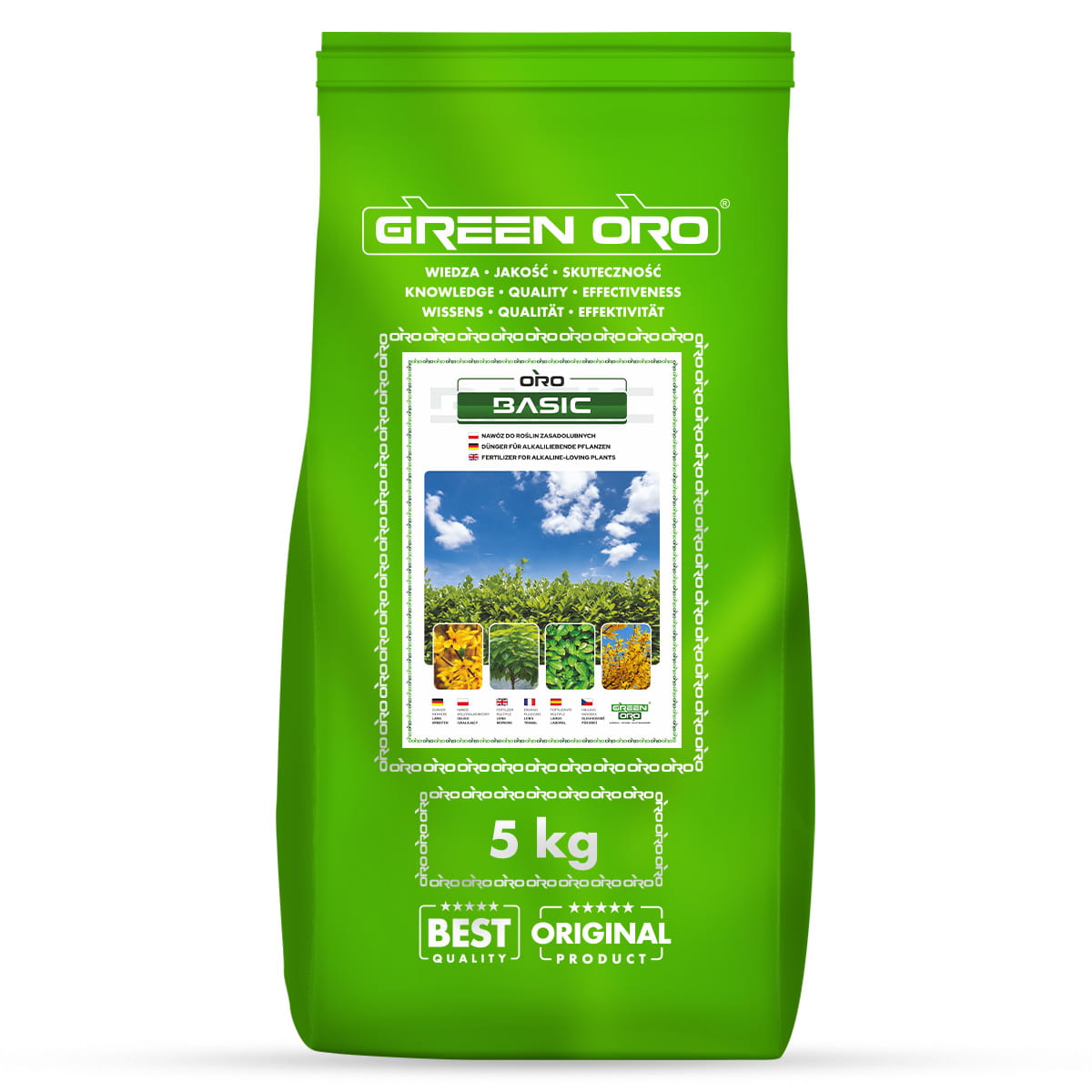 ORO BASIC to skoncentrowany, wieloskładnikowy nawóz do roślin zasadolubnych na okres III–IX. Granulat uwalnia składniki stopniowo, zapewniając odżywianie nawet przez 100 dni. Specjalna zawartość HYDRATU magnezu wspiera ograniczanie chlorozy, czyli żółknięcia i fizjologicznego brązowienia. To koncentrat, dlatego kluczowe jest przestrzeganie dawkowania, bez zwiększania dawki jednorazowej. Jest nawozem bezpiecznym dopuszczonym do stosowania przez użytkowników nieprofesjonalnych. Nawóz ORO BASIC + otoczka jest w 100% biodegradowalna i zużywana przez rośliny. Nie zawiera żadnych odpadów poprodukcyjnych.