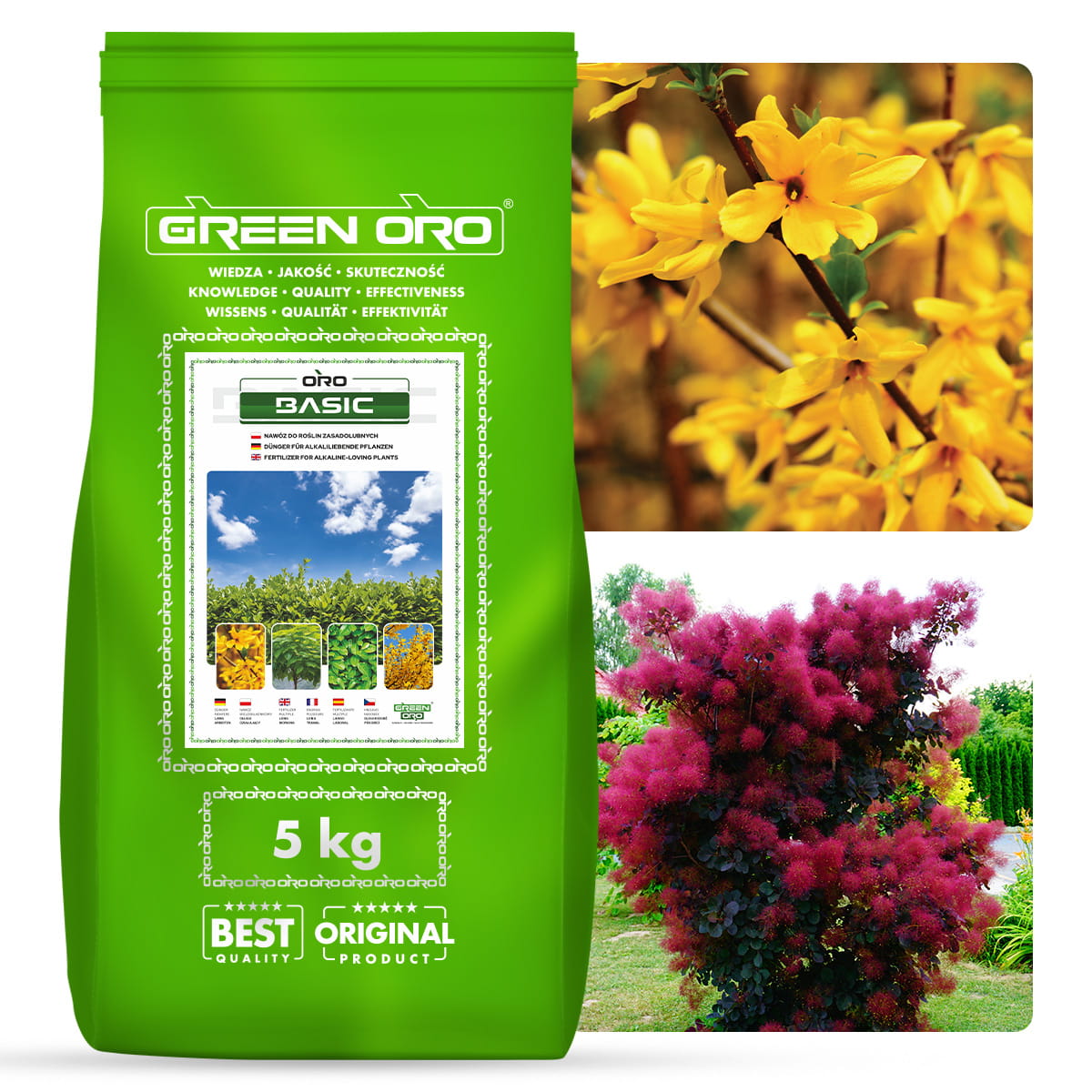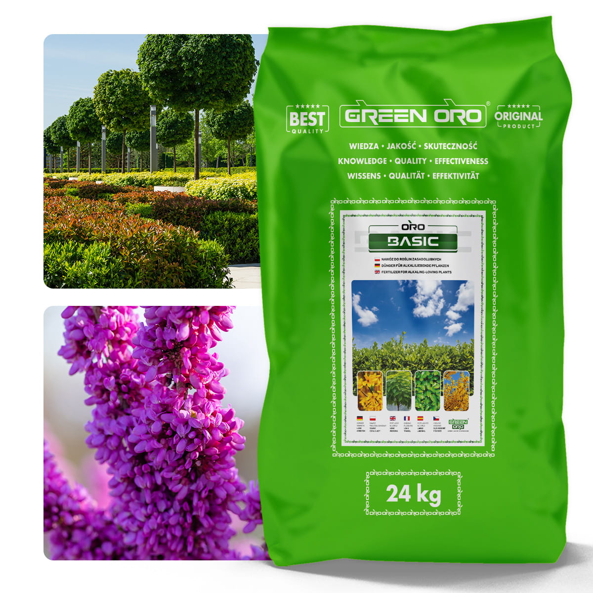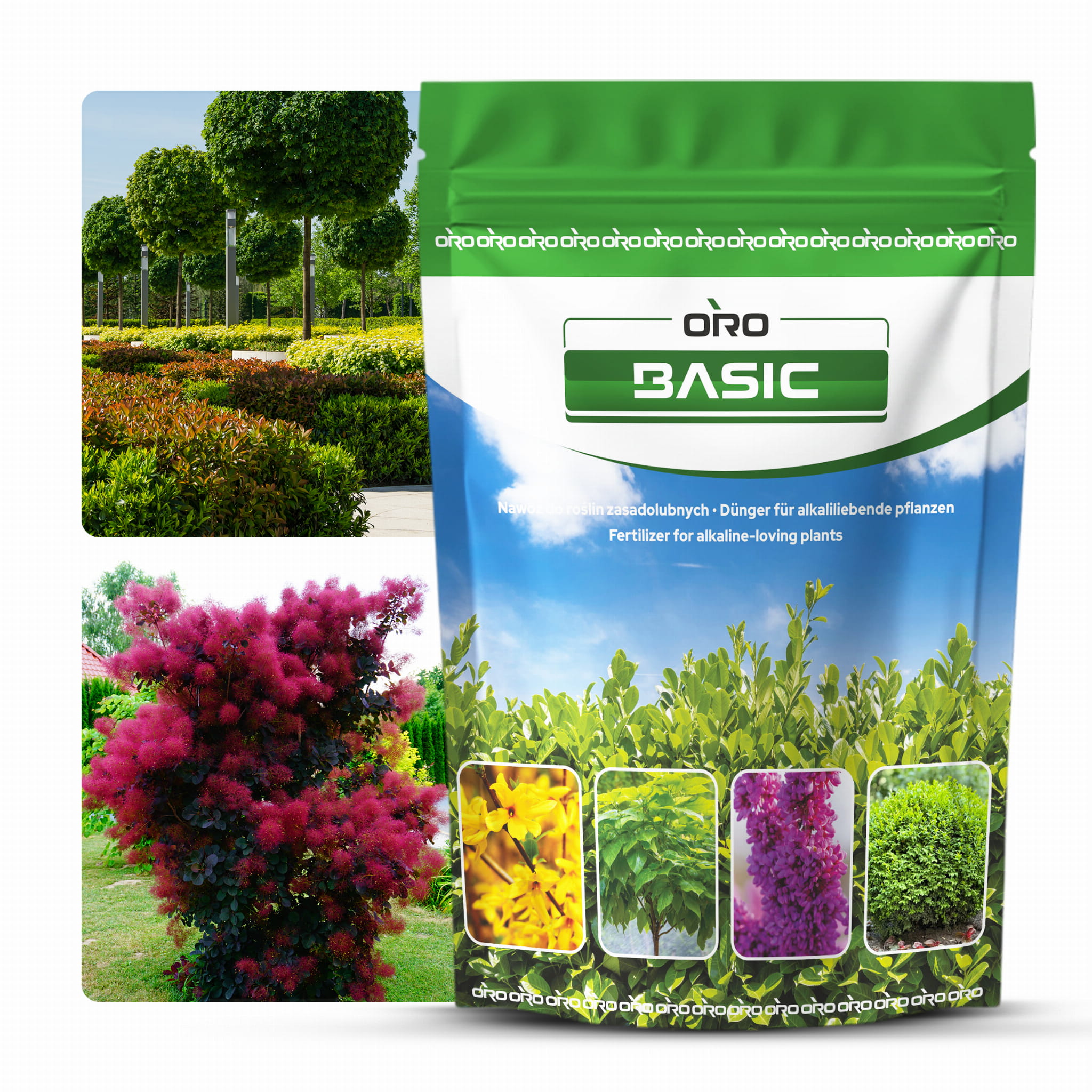 ORO BASIC nawóz do roślin zasadolubnych wiosna–lato (III–IX), długo działający (do 100 dni), granulowany, wieloskładnikowy do laurowiśni, bukszpanu, katalpy i żywopłotów. Pomaga utrzymać intensywną zieleń i ograniczać chlorozę (żółknięcie) oraz fizjologiczne brązowienie.