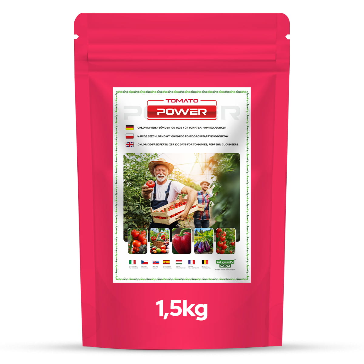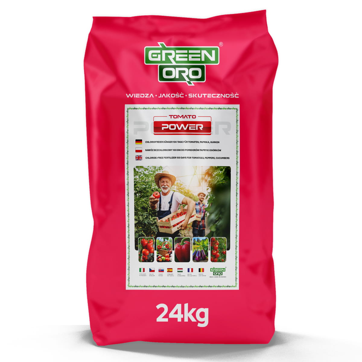GREEN ORO TOMATO POWER nawóz całosezonowy do warzyw: pomidorów, papryki, ogórków, roślin psiankowatych - długo działający, granulowany, wieloskładnikowy - wspomaga zdrowe plonowanie przez cały sezon.