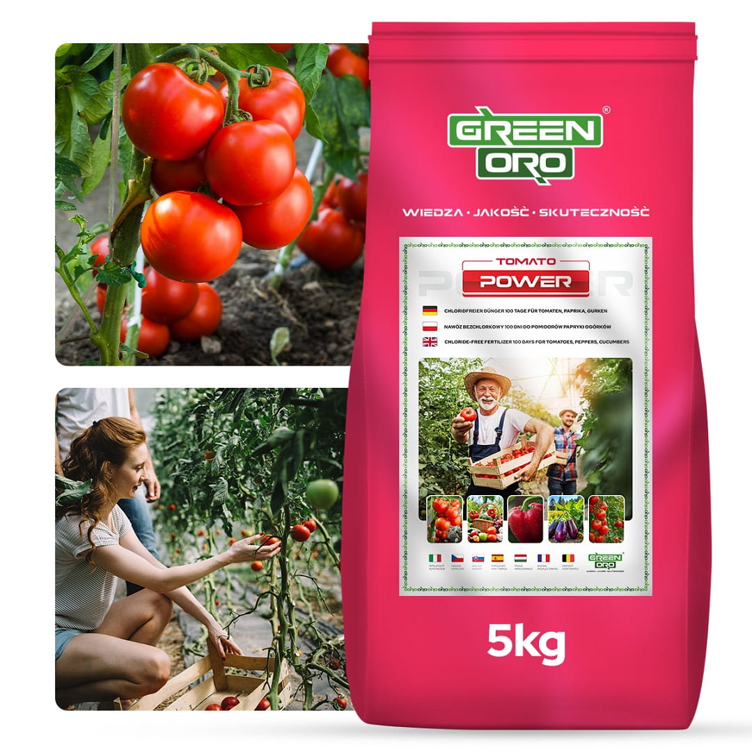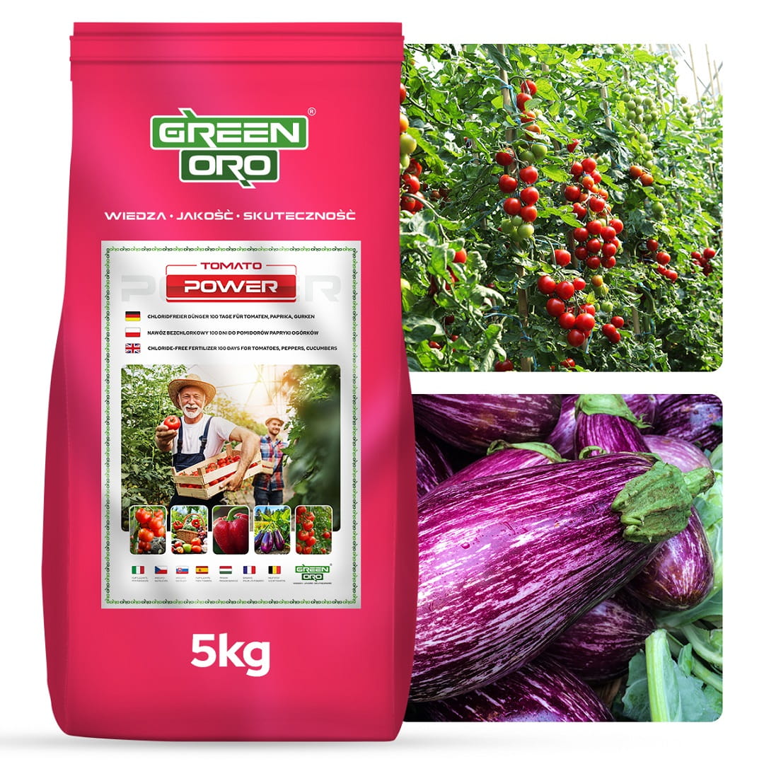 GREEN ORO TOMATO POWER to koncentrat dedykowany roślinom psiankowatym i dyniowatym: wysoki potas (K₂O 26,2%), zbilansowane NPK, magnez i mikroelementy dla kwitnienia oraz długie działanie (100–120 dni), dzięki czemu odżywianie jest równomierne i przewidywalne przez cały sezon wegetacyjny.